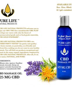 Made with a soothing blend of CBD Massage Oil including such dynamic ingredients as Safflower Oleic, Apricot, Hazelnut, Almond, Avocado and Organic French Lavender. Pure Life Natural Products introduces the powerful regenerative properties of CBD combined with other active botanical elements, that can provides your skin with a rich source of antioxidants and deeply rejuvenates the body as a whole.